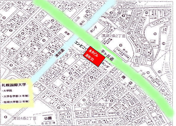 | 2LDK賃貸マンション「永井ビル清田32」の周辺付近にある札幌国際大学(徒歩3分) |
